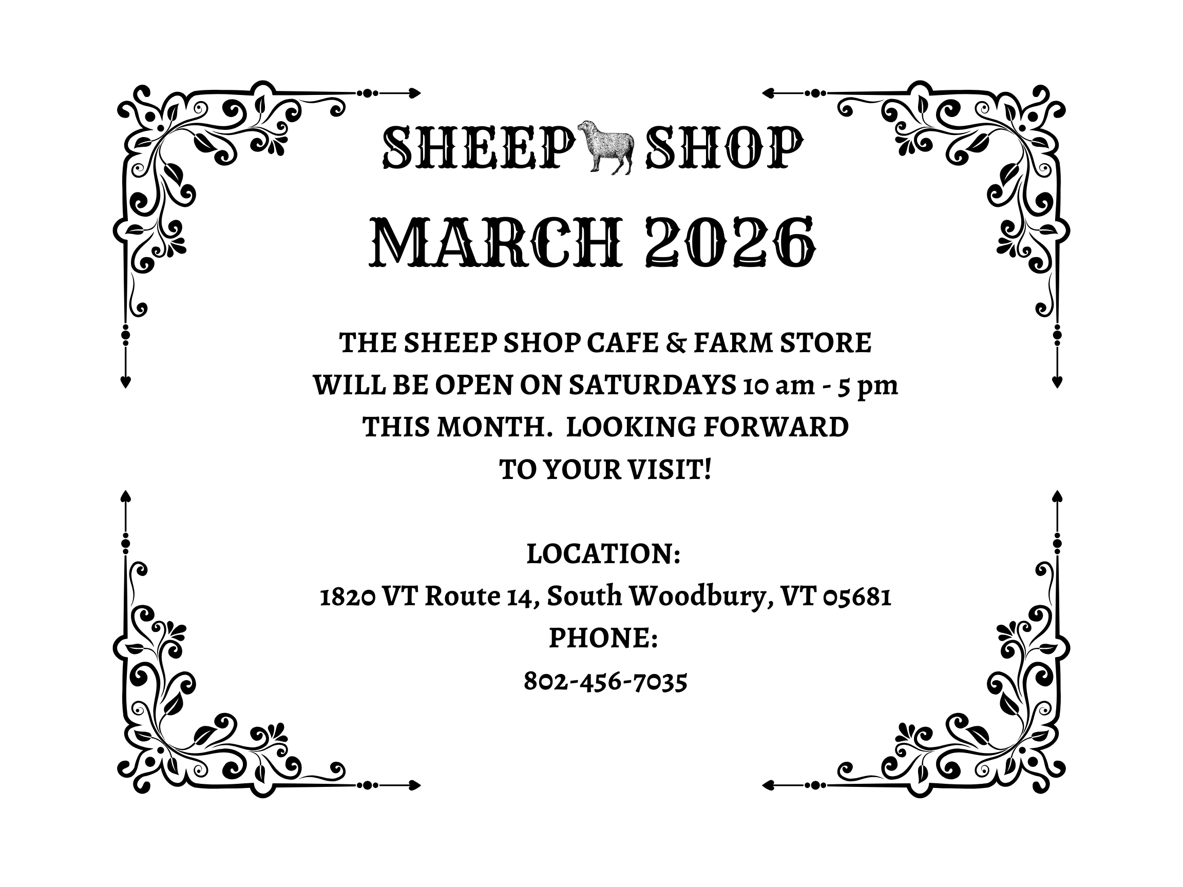 Located in the picturesque Vermont town of Woodbury, land of lakes and ponds, the Sheep Shop Café and Farm Store offers guests a unique farm experience where folks enjoy specialty coffees, artisanal teas, and fine pastries in a Victorian-styled café, and shop from a unique selection of handcrafted sheep goods at the farm store. Enjoy free wi-fi, feed the sheep and greet Joy and Hope, the shepherd dogs, and participate in farm tours, community events, and workshops.